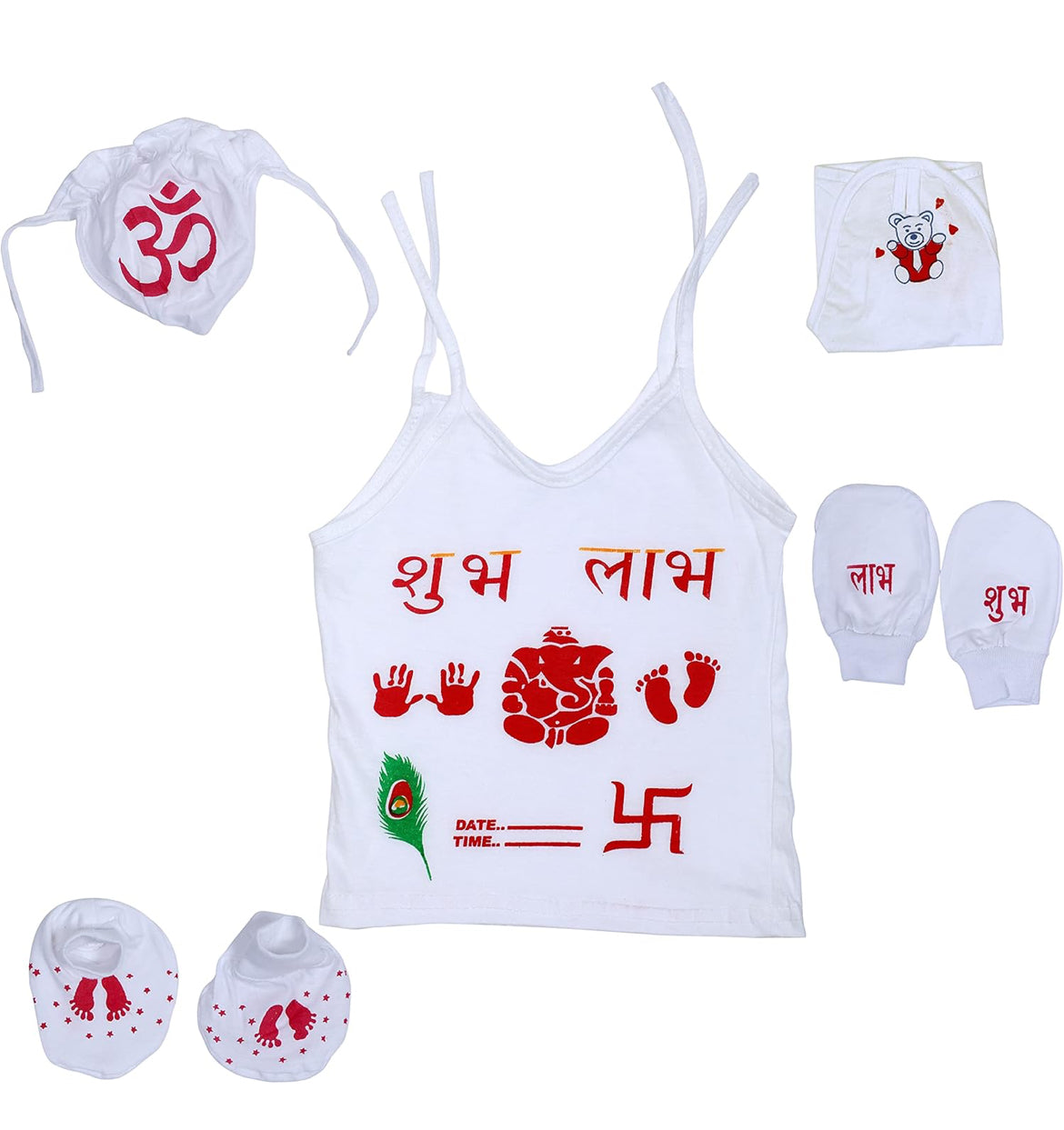 Baby Boy's and Baby Girl's Hand Painted Chatthi Name Ceremony Set of 5 Pieces (White, 0-3 Months) Multi Designs