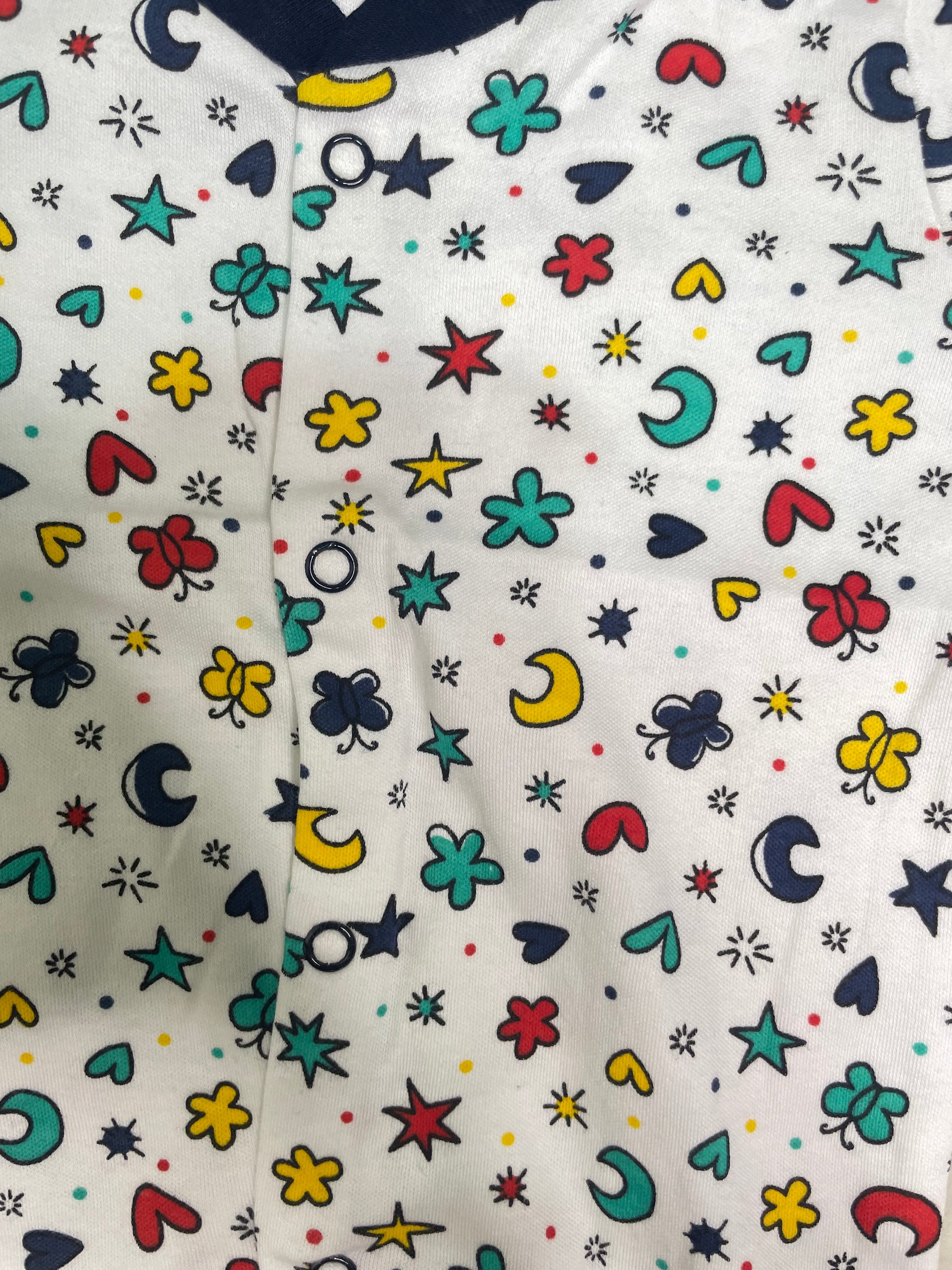 Dress your little one in comfort and style with this adorable baby romper set of 3, specially designed for infants aged 3-6 months. This pack includes three delightful designs – one solid plain romper, one classic striped romper, and one playful cartoon-printed romper on a white base. Made from soft, breathable cotton, these full-sleeve rompers feature secure snap buttons for easy dressing and diaper changes, along with covered feet to keep your baby cozy and warm. Perfect for day or night wear, they are gentle on delicate skin, providing comfort while maintaining durability for everyday use. This versatile set is ideal for gifting, home wear, or outings, offering both practicality and cuteness in one package.