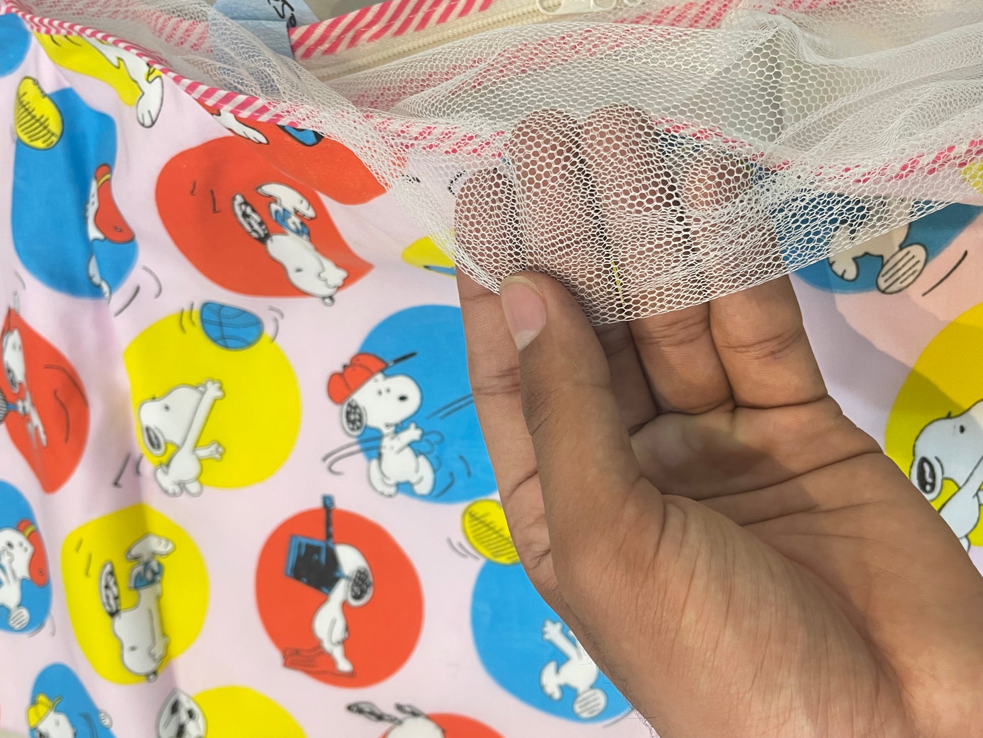 Add fun and comfort to your baby’s sleep with this Cartoon All Over Print Khoya. Designed for newborns up to 1 year, it comes with best quality net to protect your little one from mosquitoes and insects while ensuring peaceful naps. The soft fabric and adorable prints make it both cozy and stylish, and its affordable price makes it a must-have for every parent.