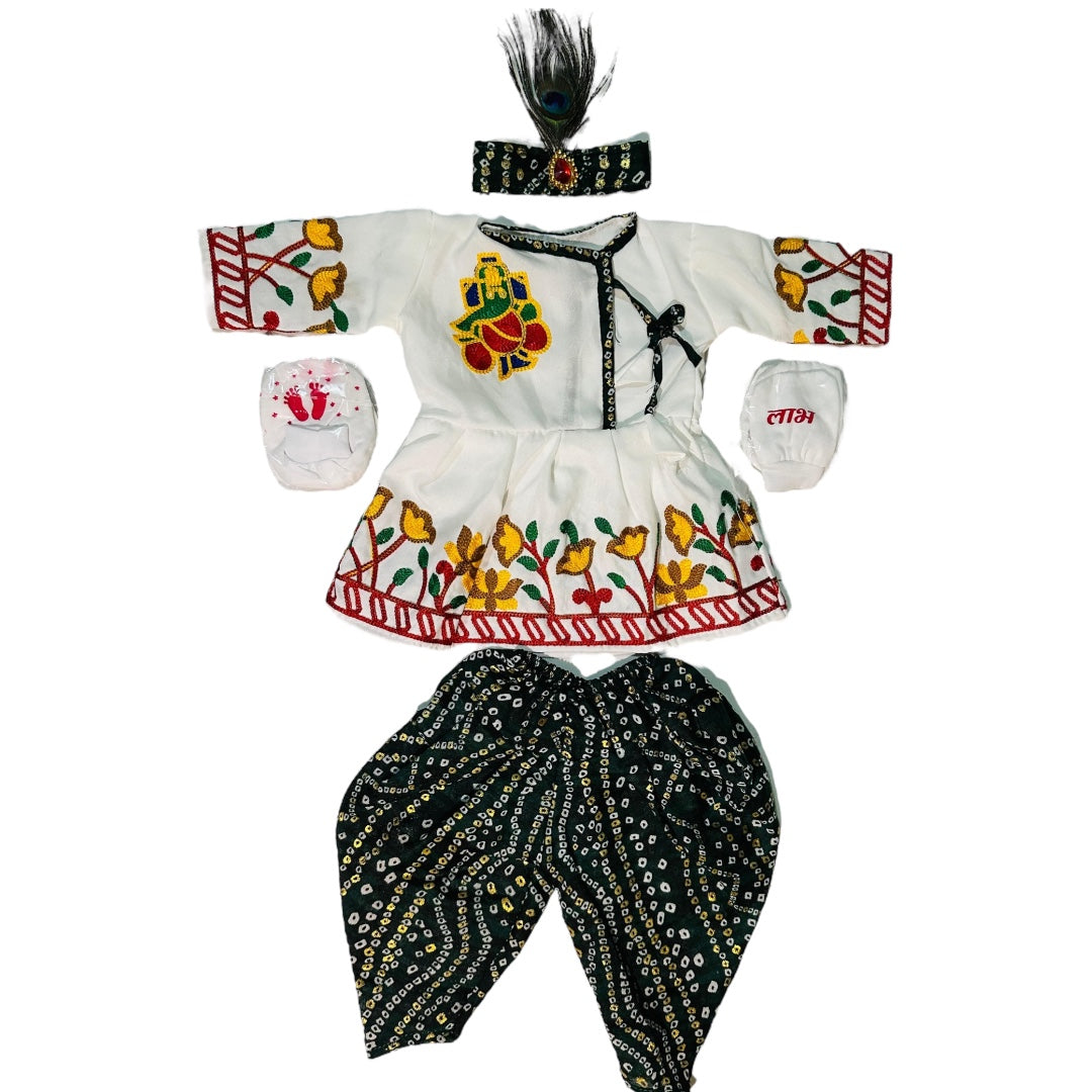 Celebrate your little one’s Chatti Poojan ceremony with this elegant 5-piece baby boy clothing set in soothing green. Designed with love and care, this set is made from soft, skin-friendly fabric to keep your baby comfortable throughout the rituals. Perfect for newborns, it includes all the essentials needed for traditional wear during the auspicious ceremony.