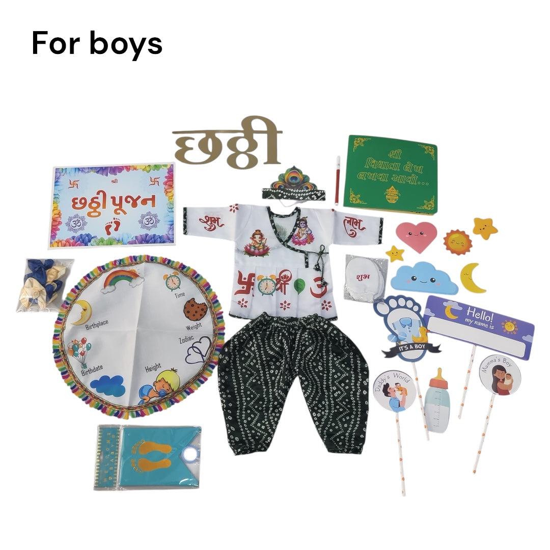Chhathi Poojan Baby boy Complete Celebration Set (Traditional Clothes & Decoration Combo for boys)