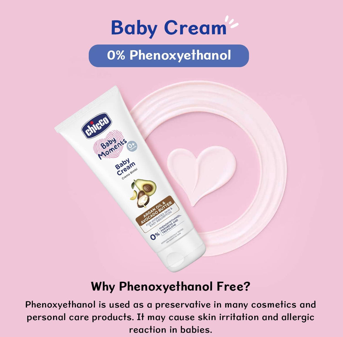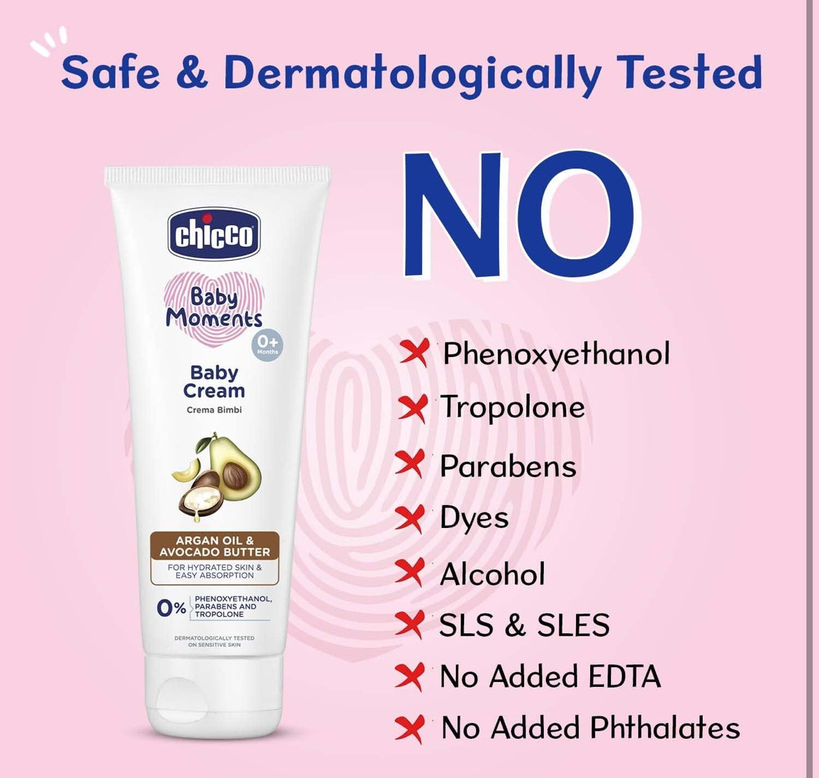 Chicco Baby Moments Baby Cream for Babies with Argan Oil & Avocado Butter, 100g| Natural Ingredients for Hydrated Skin | Dermatologically Tested | Phenoxyethanol, Parabens & Lauryl sulphates free