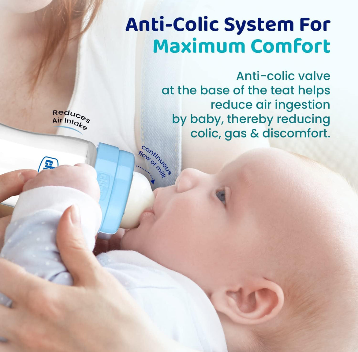 - Anti-colic system: the anti-colic valve at the base of the teat helps prevent air ingestion by the baby while feeding, thus reduces colic, gas and discomfort in babies