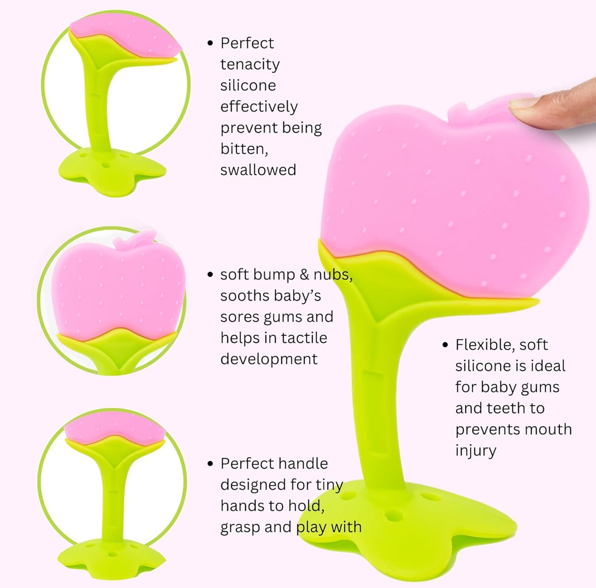 - Teether : Textured surface has a massage like feel on the gums when baby chews on the teether.