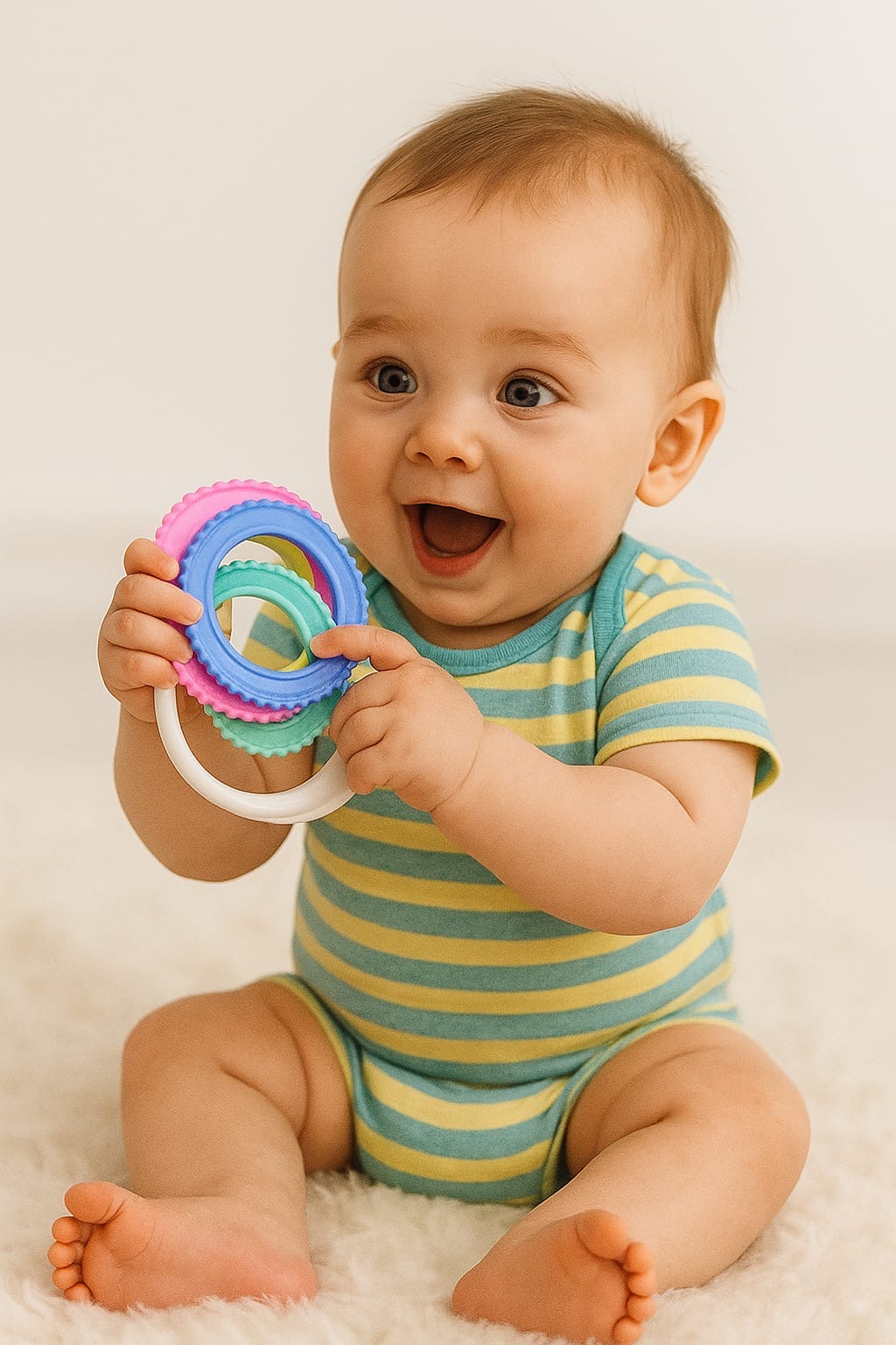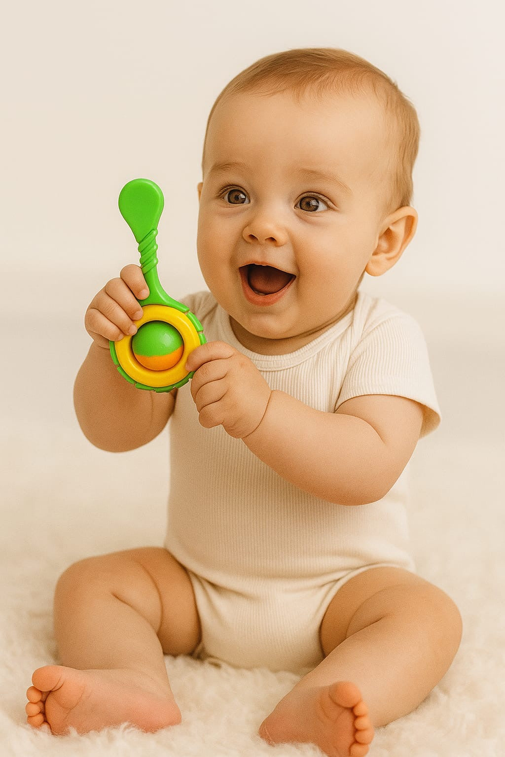 ✅ 3-in-1 Set – Includes rattle, teether, and toy