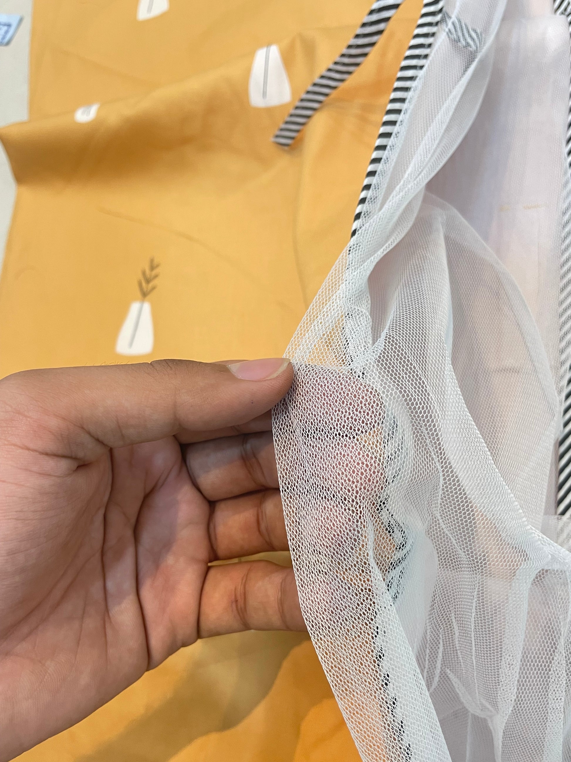 Give your little one the comfort of pure softness with this Minimal Print Baby Khoya. Made from 100% premium cotton, it ensures gentle touch on babyβs delicate skin. The attached high-quality net provides protection from mosquitoes and insects, keeping your baby safe while they sleep peacefully.