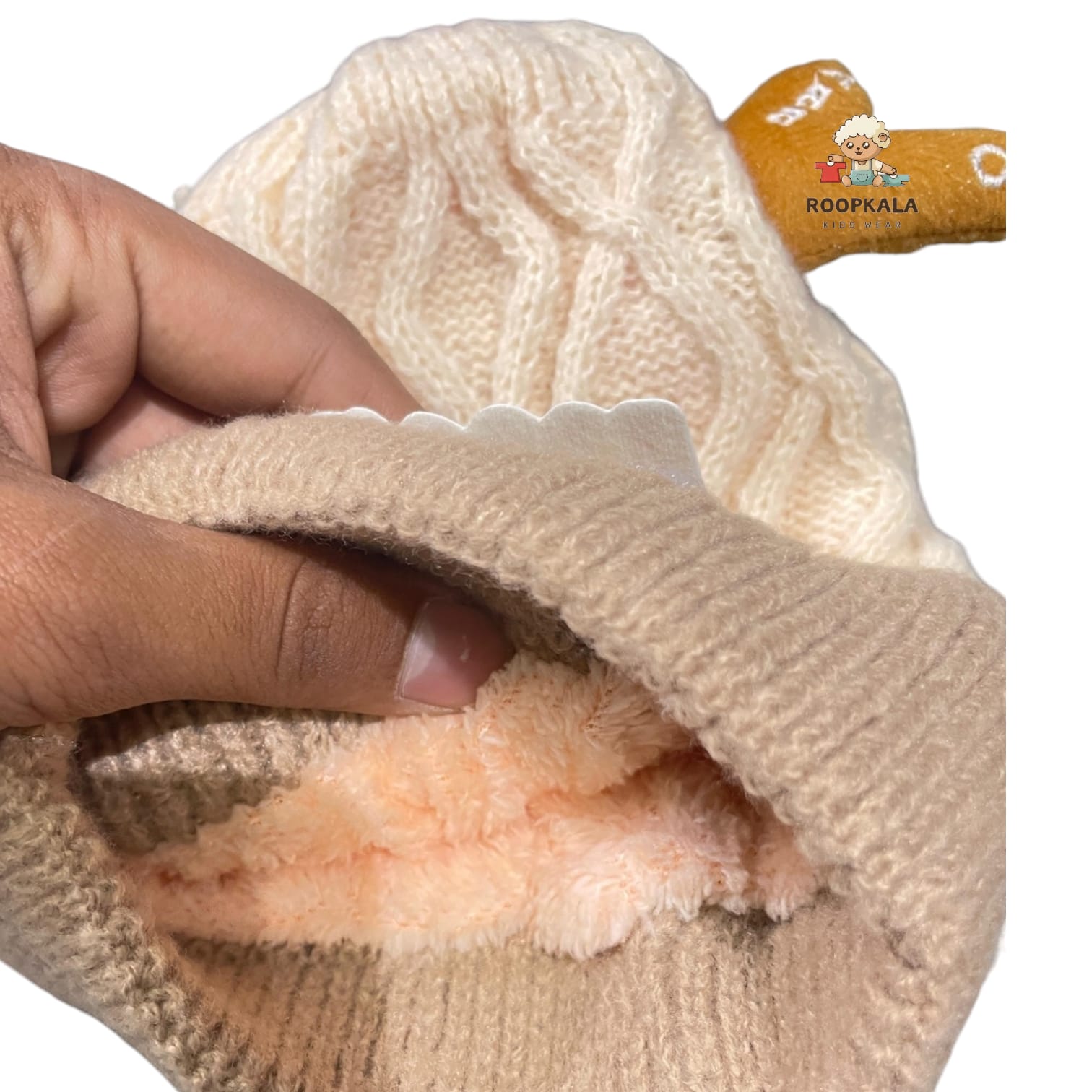 Soft Knitted Baby Winter Cap with Cute Animal Ears and Cartoon Patch – Warm and Comfortable (6 moths to 3 years)(cream)