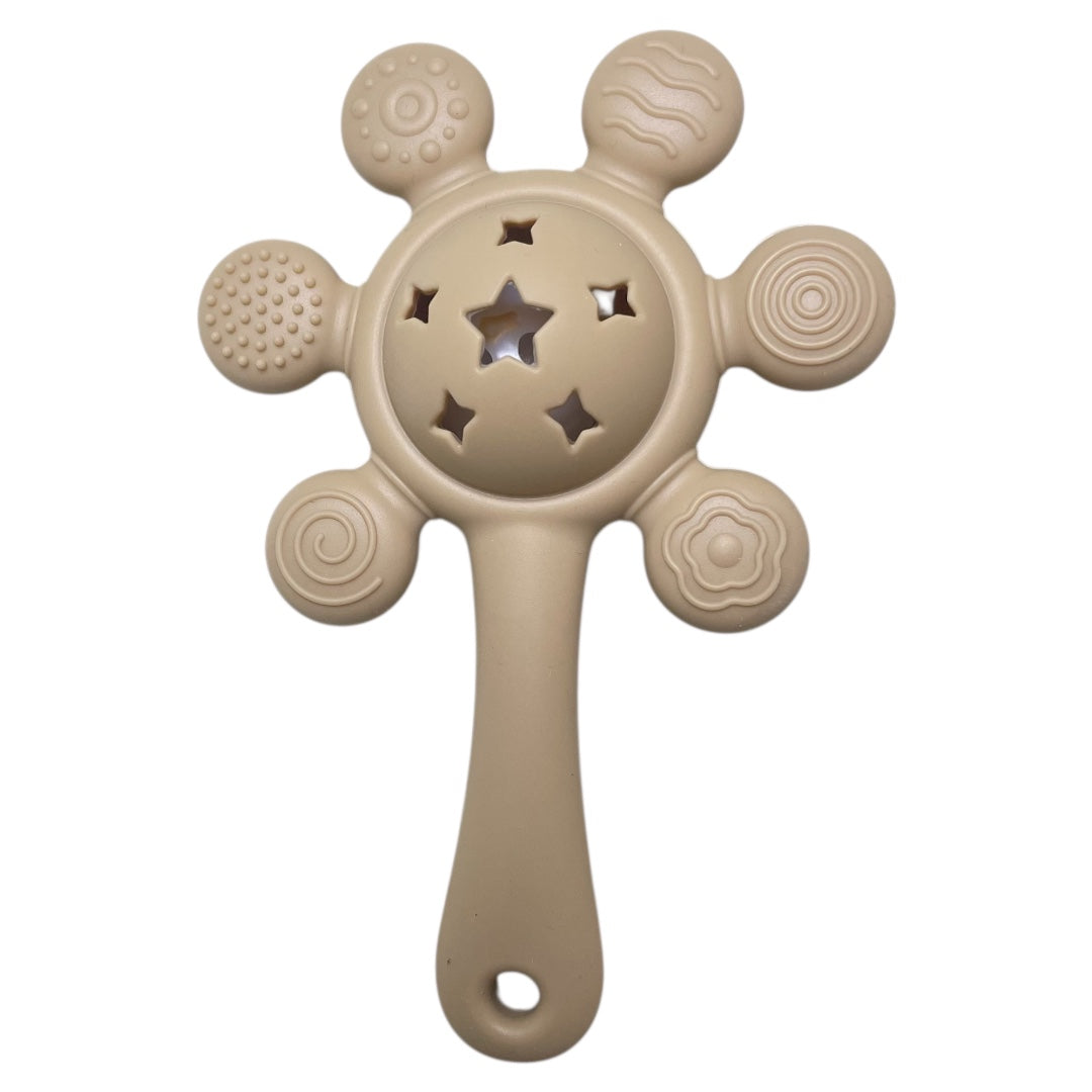 Teddy Shape Rattle Teether Toy for Babies, Multi-Textured Soft Silicone Design Suitable for Molar Teeth and Gums, Baby Chewing Toys for Teething Gums [Pack of 1] (Brown)